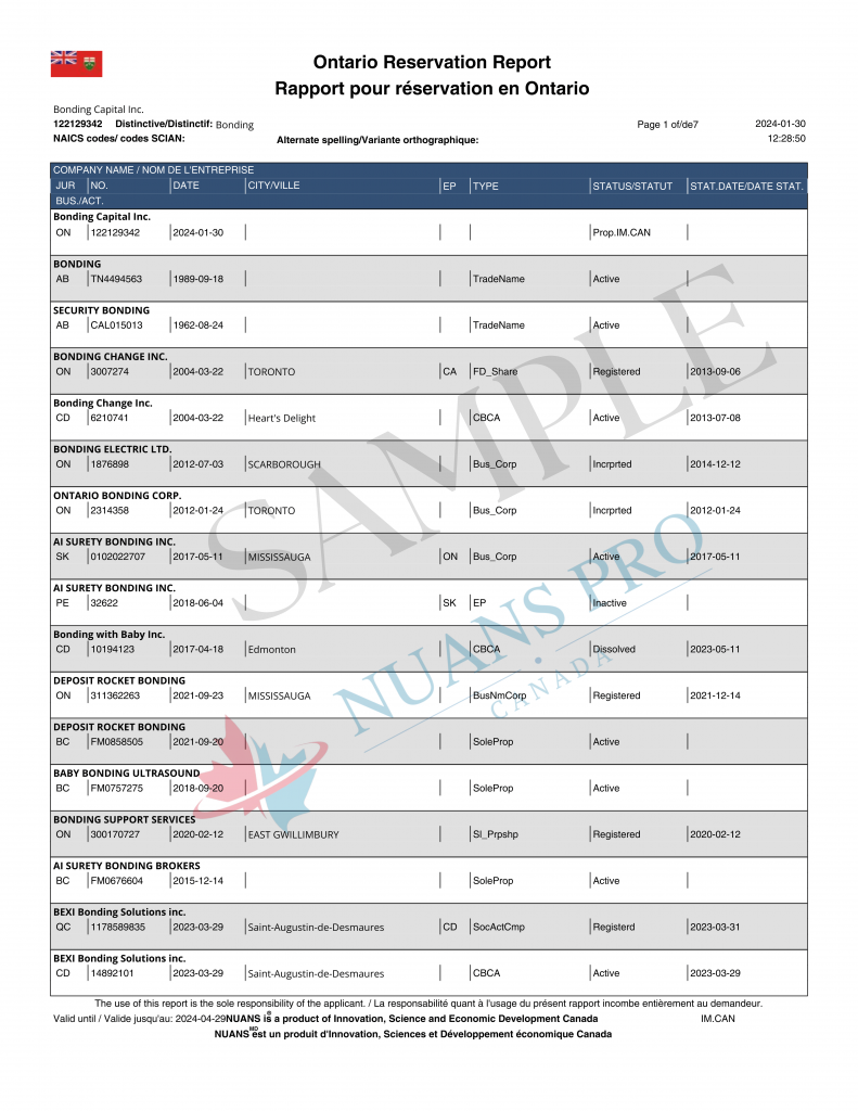 NuansPro Canada is happy to assist you not only with an Instant NUANS Report but can provide an Automated Name Search and Automated Trademark Report.