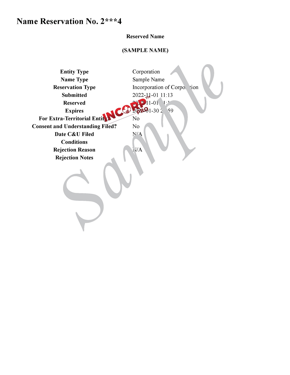Sample of Name Reservation